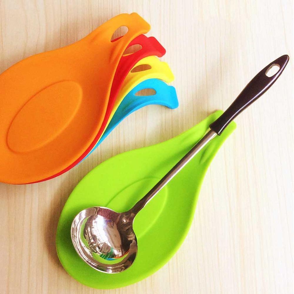 4pcs Colorful Kitchen Silicone Spoon Rest, Flexible Almond-Shaped, Silicone