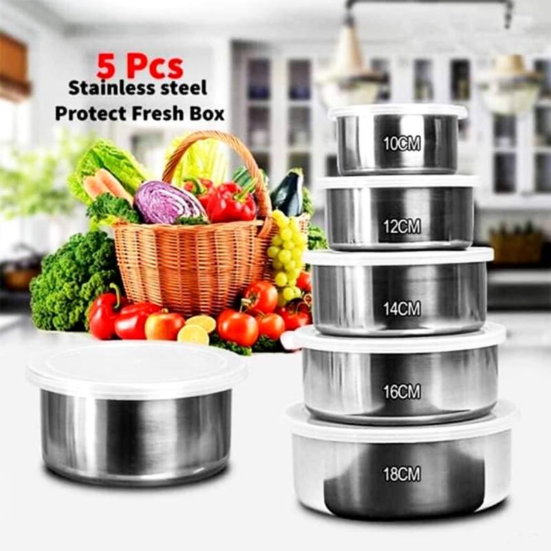 5 Pcs Protect Fresh Stainless Steel Food Container Storage Box with Cover 5 in 1 Set
