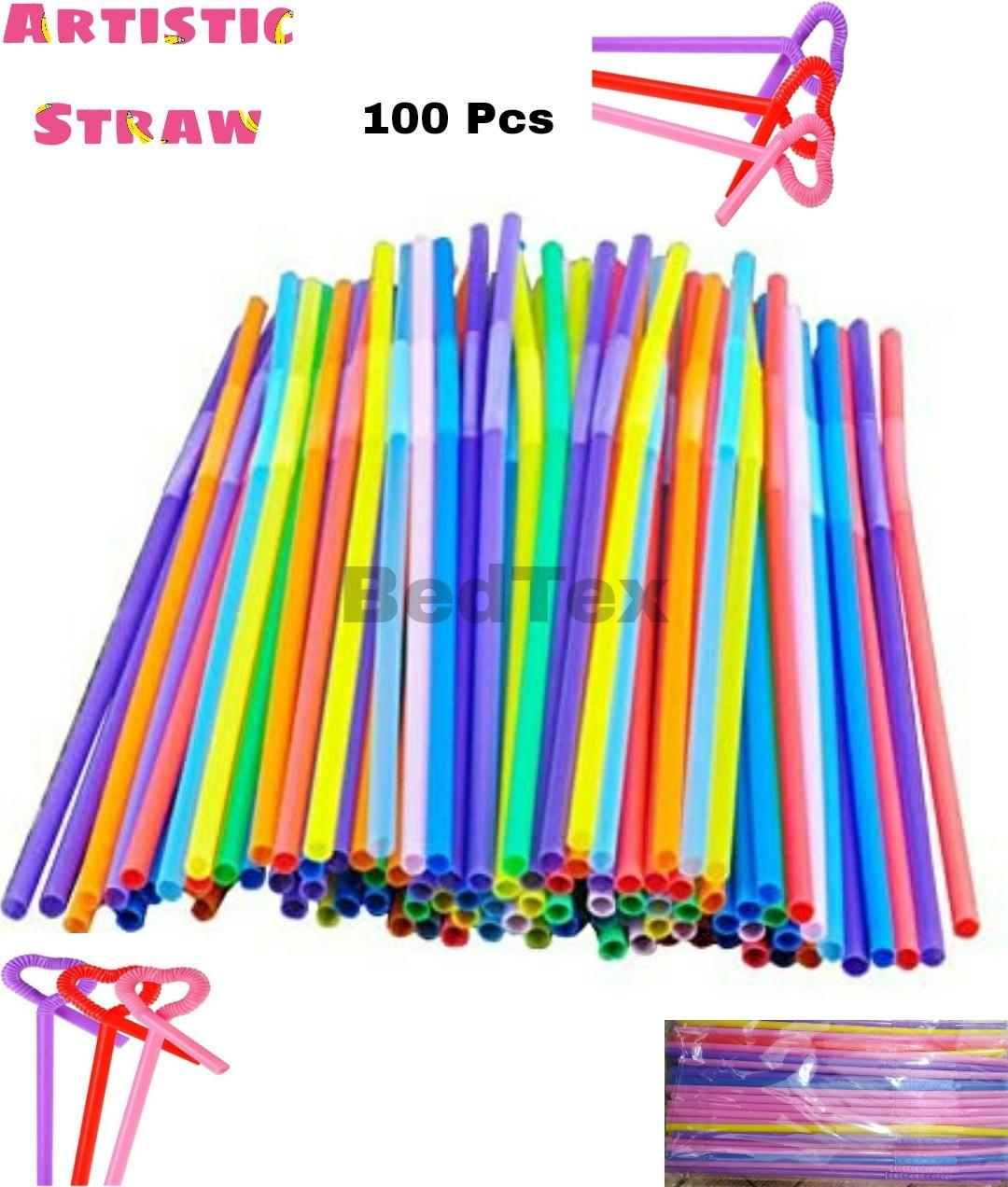 Flexible Plastic 100 Pcs 10 Inches Long Colorful Drinking Straws