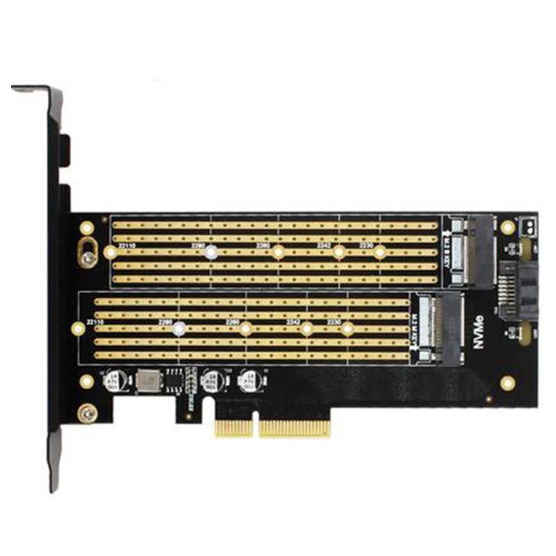 JEYI SK7 M.2 NVMe SSD NGFF TO PCI-E X4 Adapter M Key B KEY Dual Interface Card Suppor PCI Express3.0 Dual Voltage 12V+3.3V SATA3