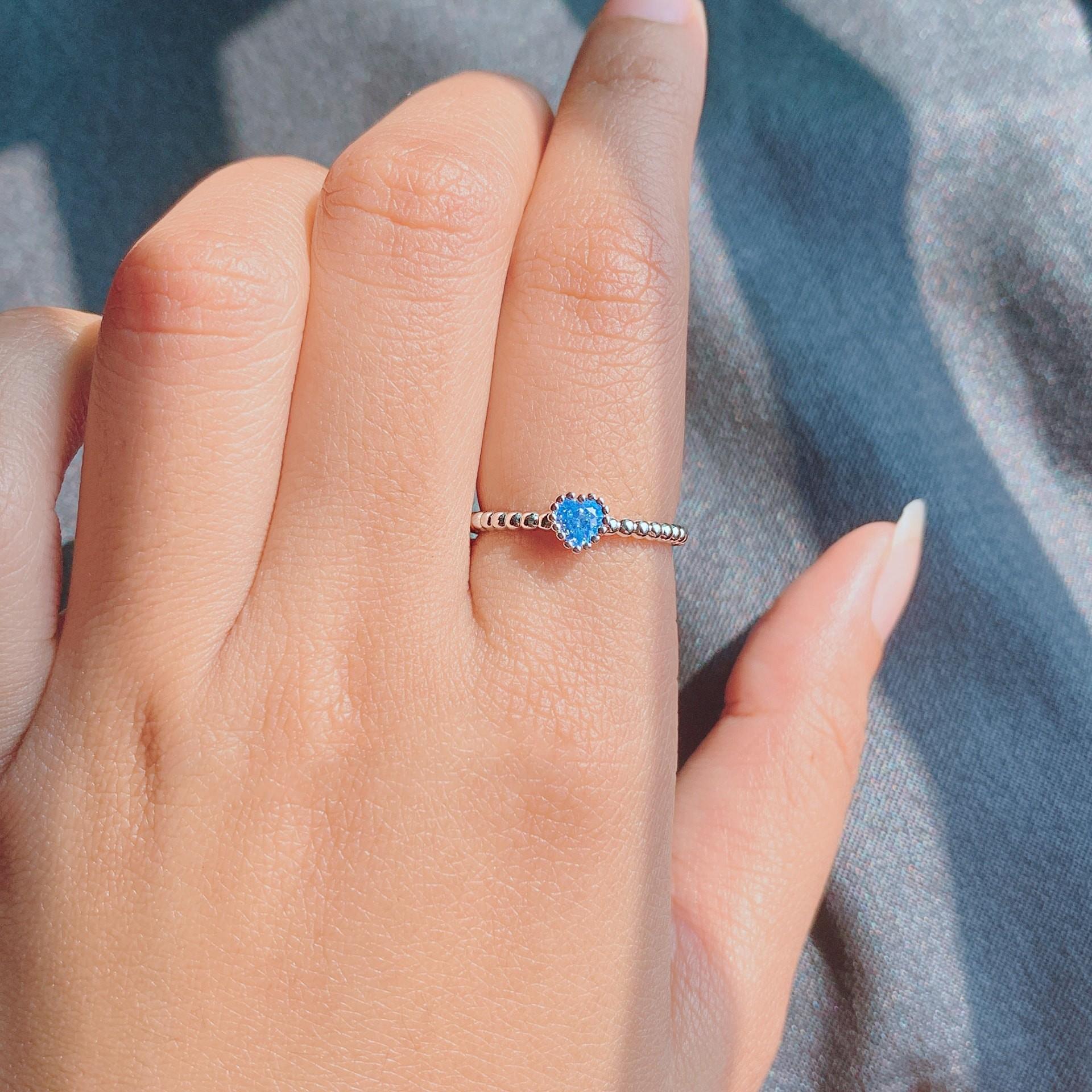 Love Shape Blue Zirconia Ring
