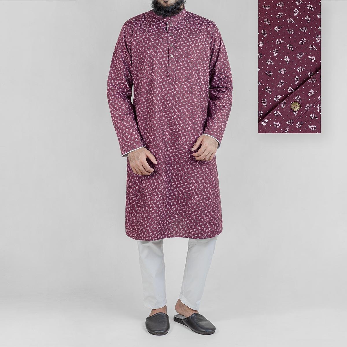 Men'S Maroon Print Panjabi By Siwak