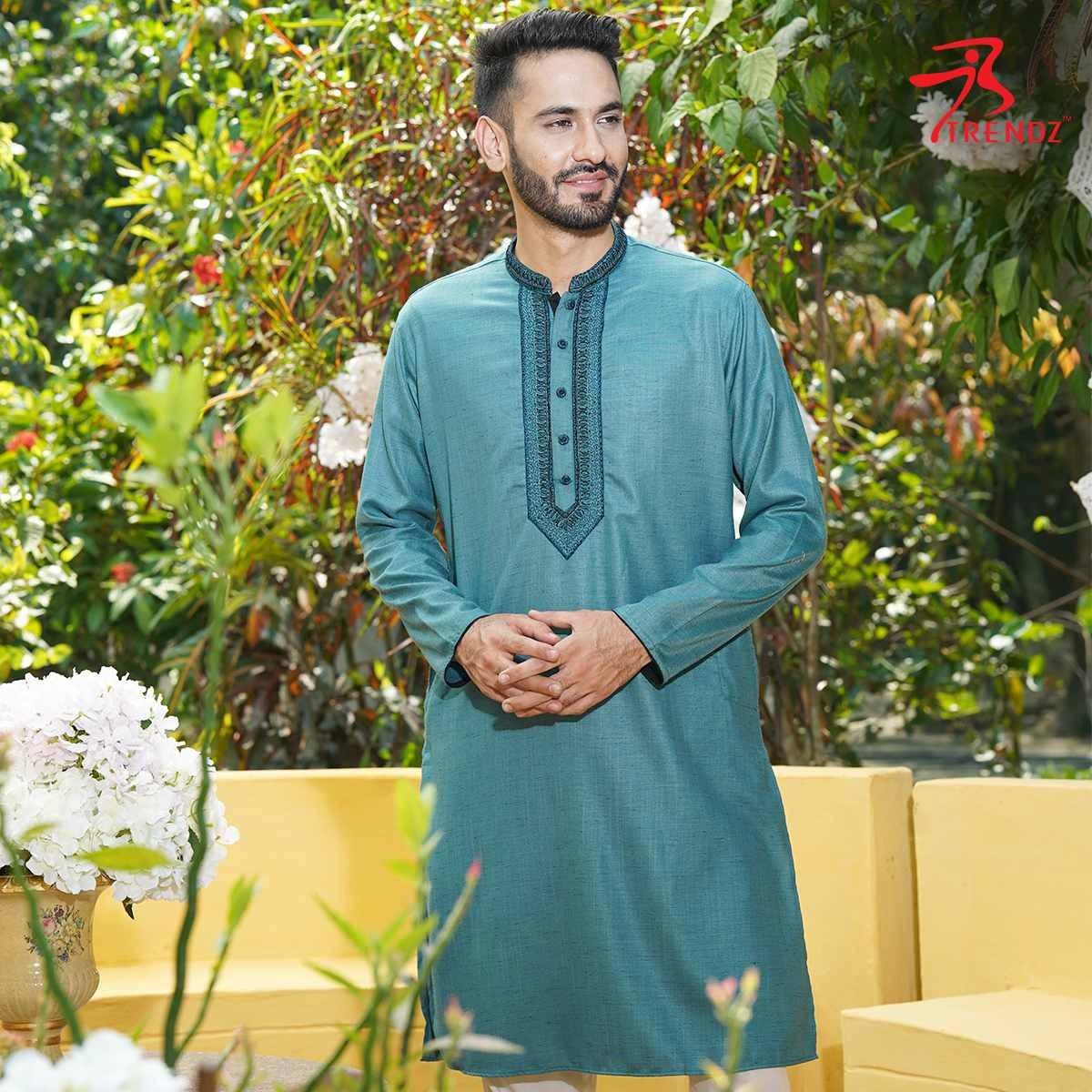 MENS SEMI LONG PUNJABI - PINE GREEN
