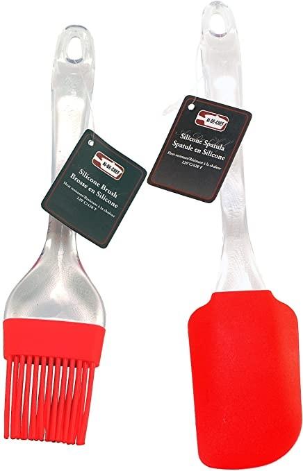 Silicone spatula Cake Pastry Spatula & Brush - Red Color Silicone 2 In 1 Cake Pastry Silicone Spatula BBQ and Egg Brush 1+1=2 pcs 1 Set